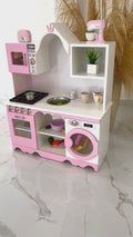 Opción 1: Funcionalidad Estándar La cocina de juguete en esta opción ofrece una experiencia de juego clásica y divertida. Ideal para niños que disfrutan de la creatividad sin necesidad de características realistas. La lavadora y el microondas no son funcionales en esta versión, ofreciendo un diseño más tradicional. La grifería no dispensa agua y, a diferencia de la versión Realista, no se incluyen luces adicionales. A pesar de estas diferencias, esta cocina sigue siendo un espacio perfecto para la imaginación y la diversión culinaria.
