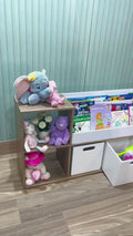 Organizador de Juguetes en Madera de Roble con Biblioteca de Melamina y Cajones de MDF